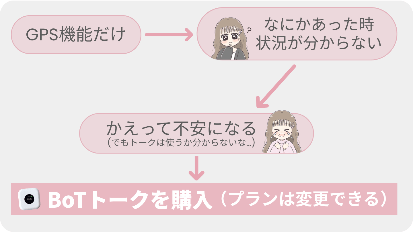 BoTトークは、位置情報だけでなく「声」でつながれる安心感が魅力の見守りGPSです。