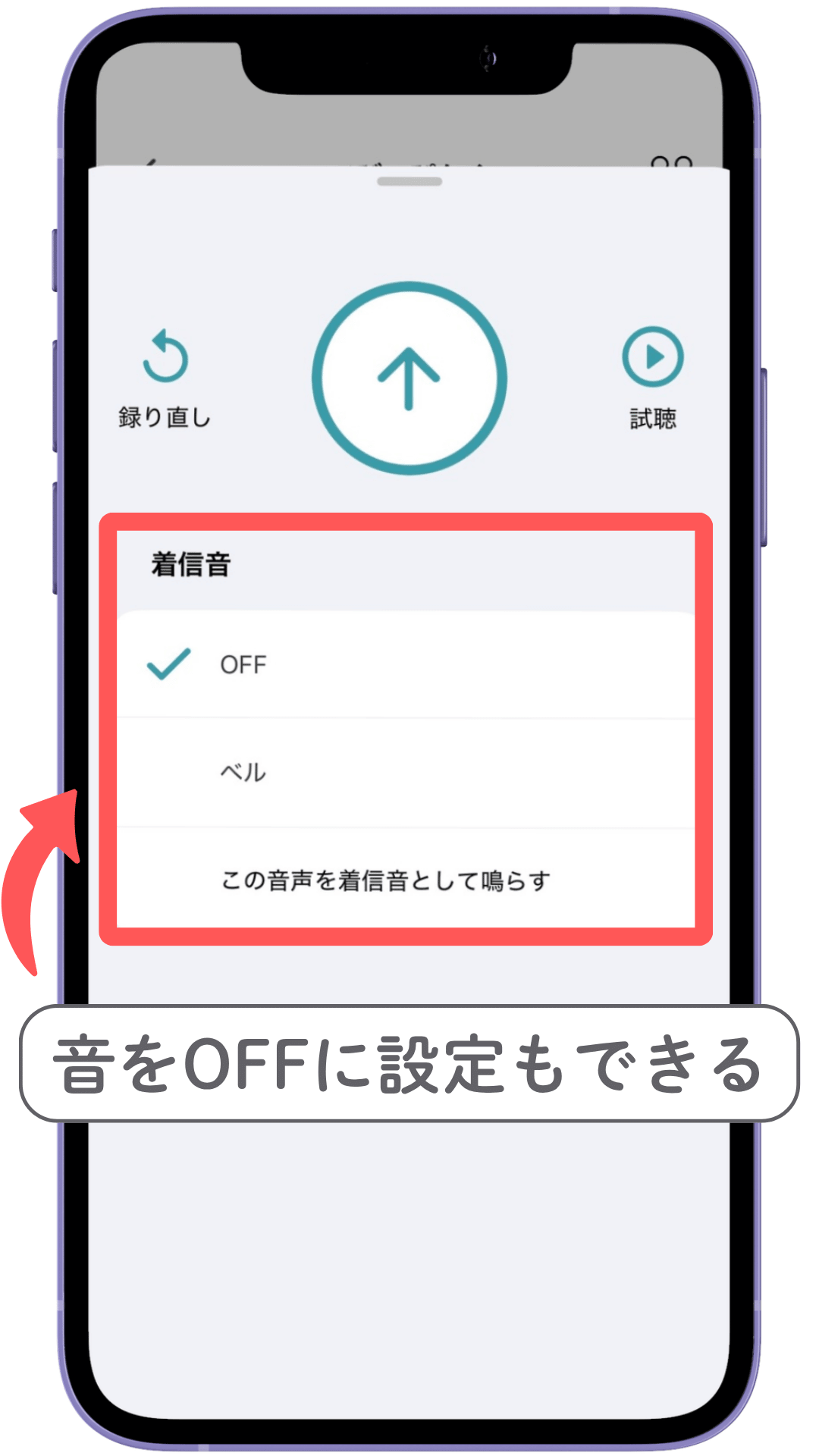 着信音を鳴らしたくない場合は、OFF設定もできるので安心です。