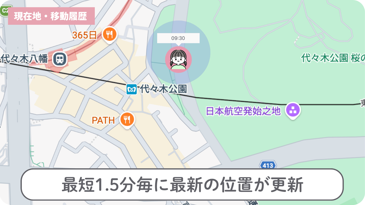 - 位置情報は最短1.5分ごとに更新&履歴も確認可能