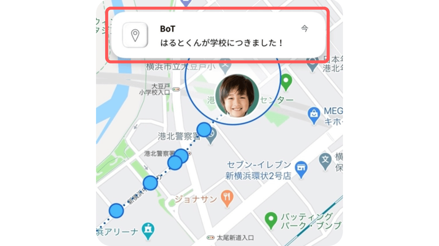 設定した通知スポットに、到着時や出発時に通知が届くので安心です。