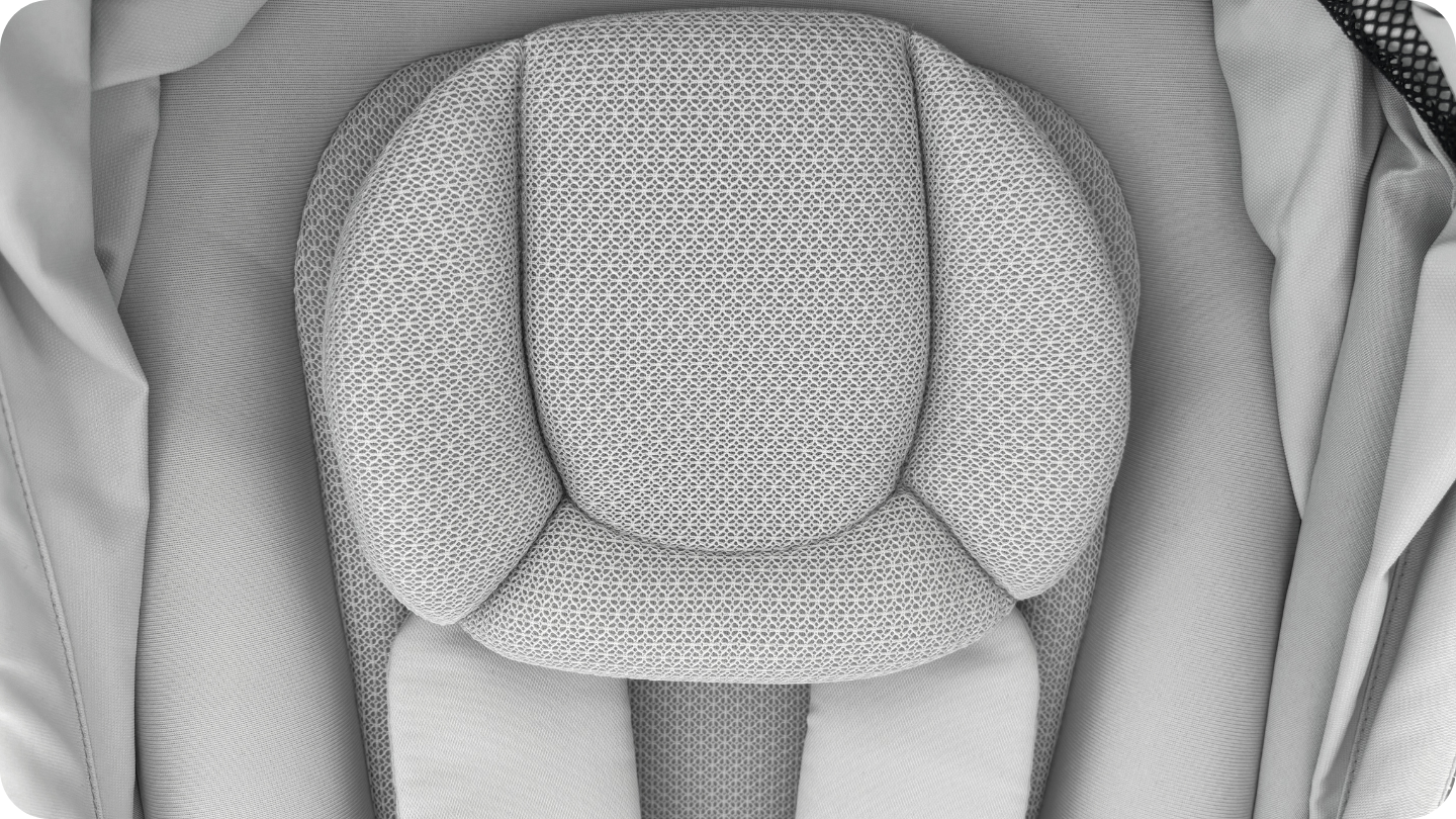 新生児インレイの持つクッション性が、振動や段差を乗り越える際の衝撃を和らげ、赤ちゃんへの負担を軽減してくれますよ。